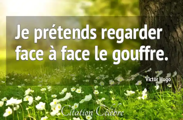 Je prétends regarder face à face le gouffre.