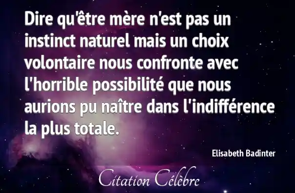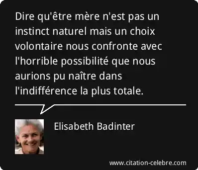 Dire qu'être mère n'est pas un instinct naturel mais un choix volontaire nous confronte avec l'horrible possibilité que nous aurions pu naître dans l'indifférence la plus totale.