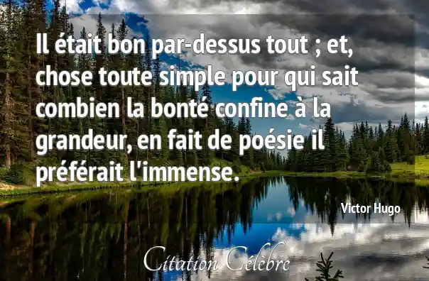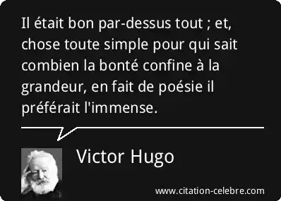 Il était bon par-dessus tout ; et, chose toute simple pour qui sait combien la bonté confine à la grandeur, en fait de poésie il préférait l'immense.