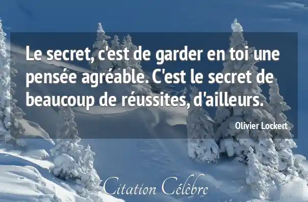 Le secret, c'est de garder en toi une pensée agréable. C'est le secret de beaucoup de réussites, d'ailleurs.
