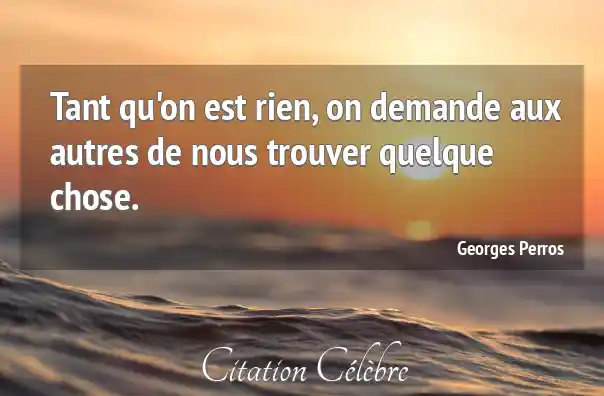 Tant qu'on est rien, on demande aux autres de nous trouver quelque chose.