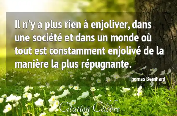 Il n'y a plus rien à enjoliver, dans une société et dans un monde où tout est constamment enjolivé de la manière la plus répugnante.