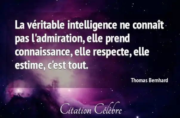 La véritable intelligence ne connaît pas l'admiration, elle prend connaissance, elle respecte, elle estime, c'est tout.