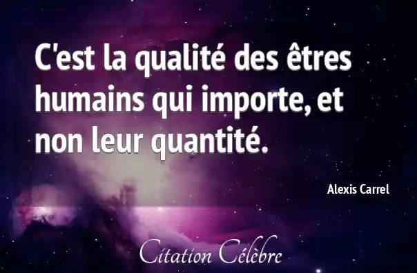 C'est la qualité des êtres humains qui importe, et non leur quantité.