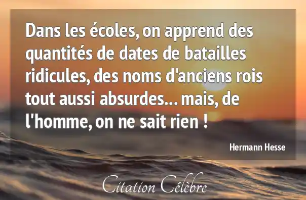 Dans les écoles, on apprend des quantités de dates de batailles ridicules, des noms d'anciens rois tout aussi absurdes... mais, de l'homme, on ne sait rien !