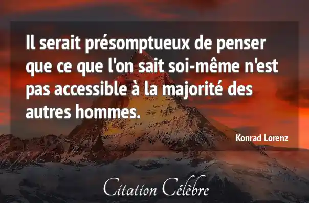 Il serait présomptueux de penser que ce que l'on sait soi-même n'est pas accessible à la majorité des autres hommes.