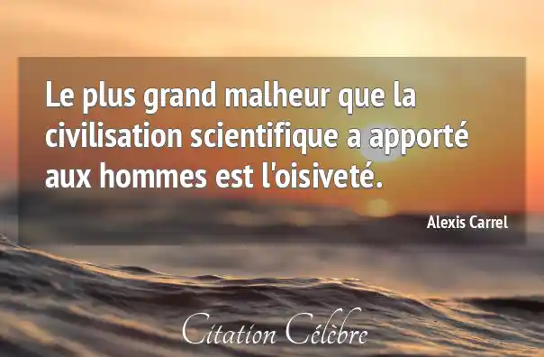 Le plus grand malheur que la civilisation scientifique a apporté aux hommes est l'oisiveté.