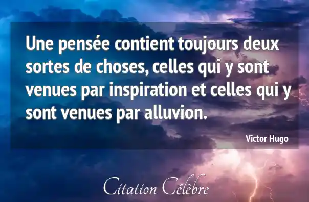 Une pensée contient toujours deux sortes de choses, celles qui y sont venues par inspiration et celles qui y sont venues par alluvion.