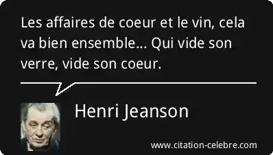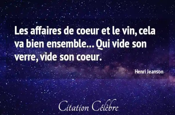 Les affaires de coeur et le vin, cela va bien ensemble... Qui vide son verre, vide son coeur.