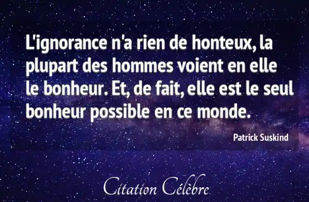 L'ignorance n'a rien de honteux, la plupart des hommes voient en elle le bonheur. Et, de fait, elle est le seul bonheur possible en ce monde.