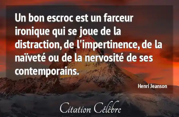 Un bon escroc est un farceur ironique qui se joue de la distraction, de l'impertinence, de la naïveté ou de la nervosité de ses contemporains.