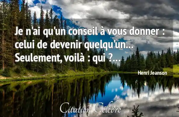 Je n'ai qu'un conseil à vous donner : celui de devenir quelqu'un... Seulement, voilà : qui ?...