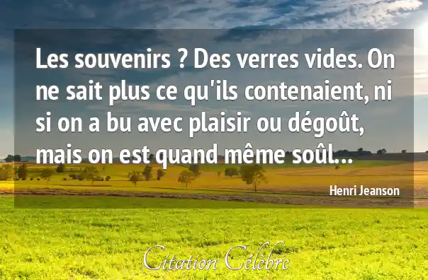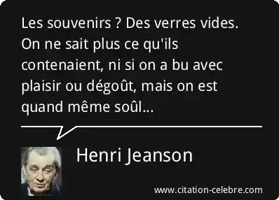 Les souvenirs ? Des verres vides. On ne sait plus ce qu'ils contenaient, ni si on a bu avec plaisir ou dégoût, mais on est quand même soûl...