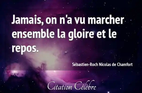 Jamais, on n'a vu marcher ensemble la gloire et le repos.