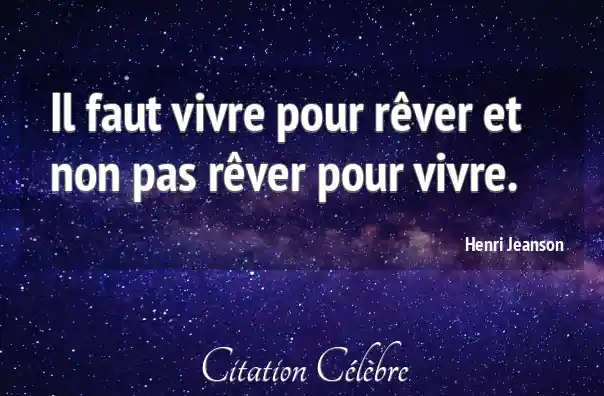 Il faut vivre pour rêver et non pas rêver pour vivre.