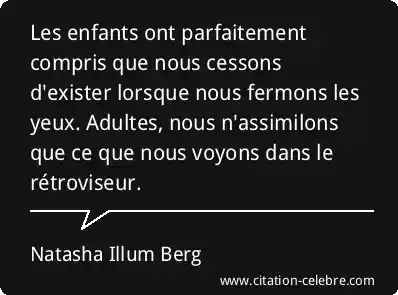 Les enfants ont parfaitement compris que nous cessons d'exister lorsque nous fermons les yeux. Adultes, nous n'assimilons que ce que nous voyons dans le rétroviseur.