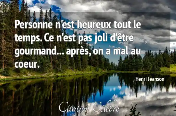 Personne n'est heureux tout le temps. Ce n'est pas joli d'être gourmand... après, on a mal au coeur.