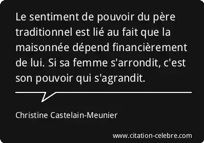 Le sentiment de pouvoir du père traditionnel est lié au fait que la maisonnée dépend financièrement de lui. Si sa femme s'arrondit, c'est son pouvoir qui s'agrandit.