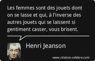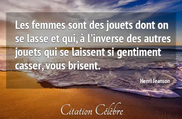 Les femmes sont des jouets dont on se lasse et qui, à l'inverse des autres jouets qui se laissent si gentiment casser, vous brisent.