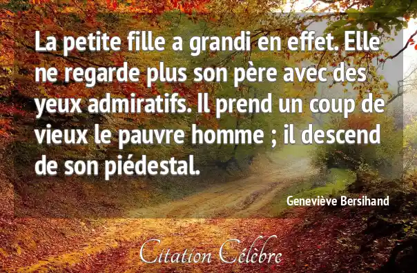 La petite fille a grandi en effet. Elle ne regarde plus son père avec des yeux admiratifs. Il prend un coup de vieux le pauvre homme ; il descend de son piédestal.