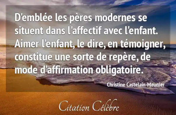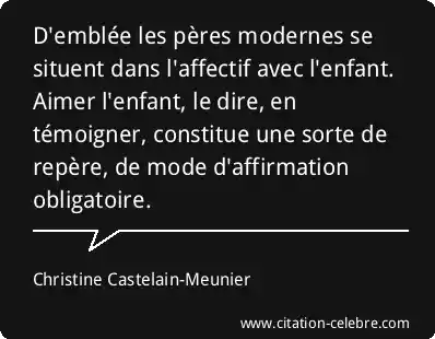 D'emblée les pères modernes se situent dans l'affectif avec l'enfant. Aimer l'enfant, le dire, en témoigner, constitue une sorte de repère, de mode d'affirmation obligatoire.