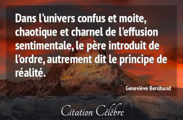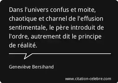 Dans l'univers confus et moite, chaotique et charnel de l'effusion sentimentale, le père introduit de l'ordre, autrement dit le principe de réalité.