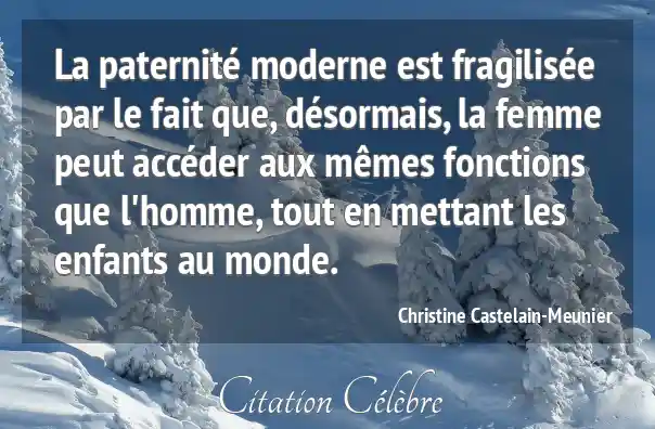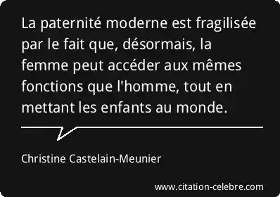 La paternité moderne est fragilisée par le fait que, désormais, la femme peut accéder aux mêmes fonctions que l'homme, tout en mettant les enfants au monde.