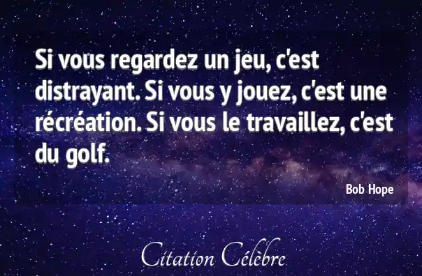 Si vous regardez un jeu, c'est distrayant. Si vous y jouez, c'est une récréation. Si vous le travaillez, c'est du golf.