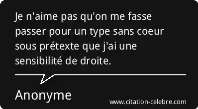Je n'aime pas qu'on me fasse passer pour un type sans coeur sous prétexte que j'ai une sensibilité de droite.