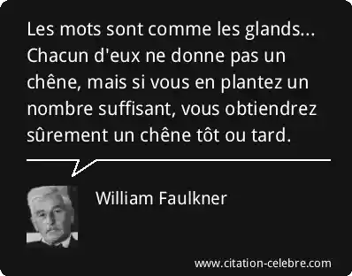 Les mots sont comme les glands... Chacun d'eux ne donne pas un chêne, mais si vous en plantez un nombre suffisant, vous obtiendrez sûrement un chêne tôt ou tard.