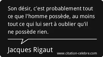 Son désir, c'est probablement tout ce que l'homme possède, au moins tout ce qui lui sert à oublier qu'il ne possède rien.