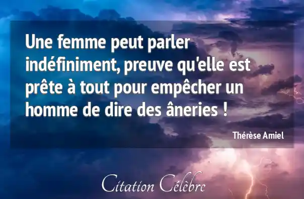 Une femme peut parler indéfiniment, preuve qu'elle est prête à tout pour empêcher un homme de dire des âneries !
