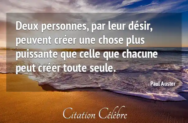 Deux personnes, par leur désir, peuvent créer une chose plus puissante que celle que chacune peut créer toute seule.
