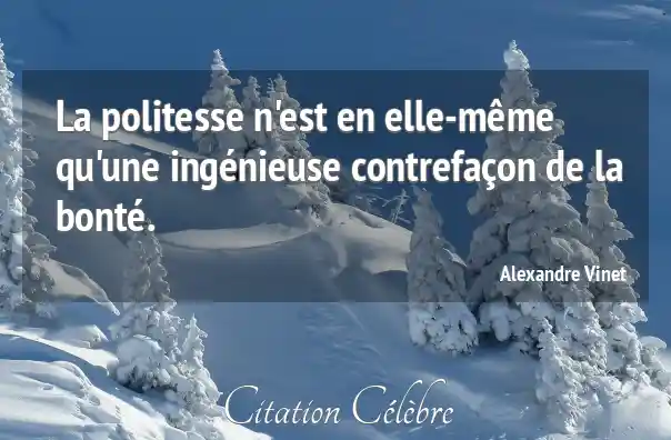La politesse n'est en elle-même qu'une ingénieuse contrefaçon de la bonté.