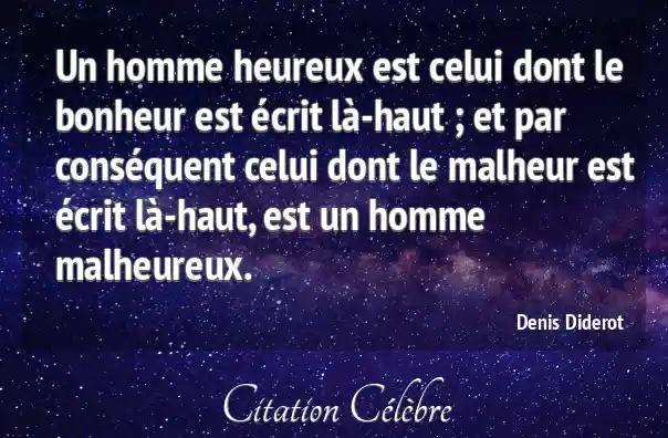 Un homme heureux est celui dont le bonheur est écrit là-haut ; et par conséquent celui dont le malheur est écrit là-haut, est un homme malheureux.