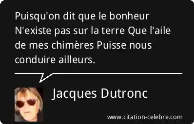 Puisqu'on dit que le bonheur N'existe pas sur la terre Que l'aile de mes chimères Puisse nous conduire ailleurs.