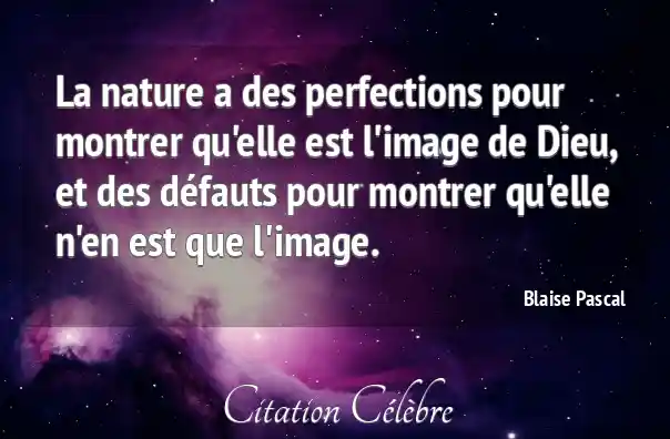 La nature a des perfections pour montrer qu'elle est l'image de Dieu, et des défauts pour montrer qu'elle n'en est que l'image.