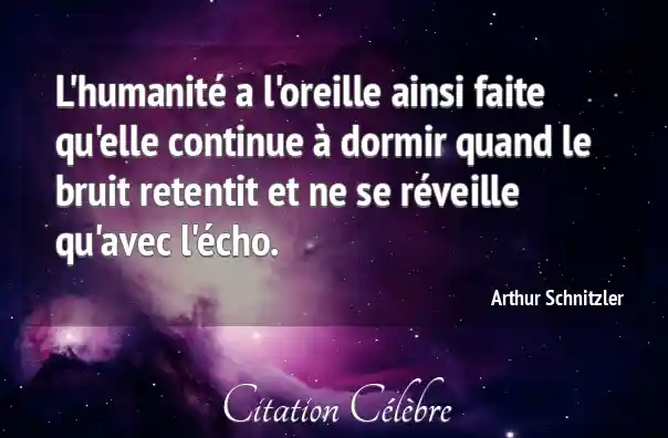 L'humanité a l'oreille ainsi faite qu'elle continue à dormir quand le bruit retentit et ne se réveille qu'avec l'écho.