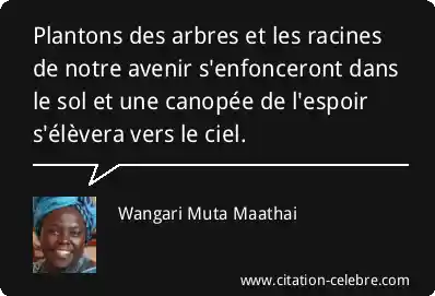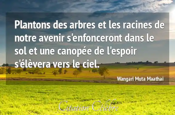 Plantons des arbres et les racines de notre avenir s'enfonceront dans le sol et une canopée de l'espoir s'élèvera vers le ciel.