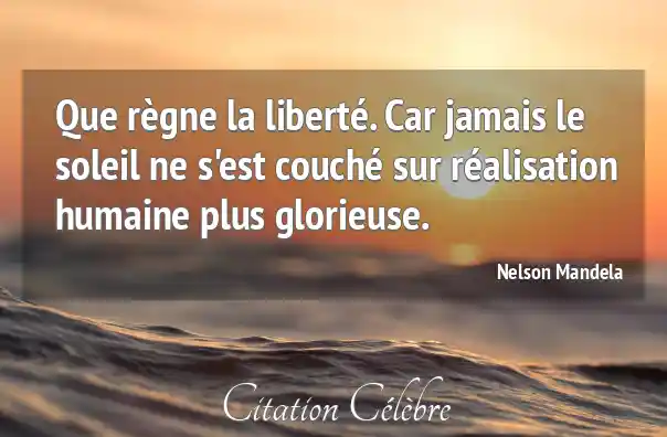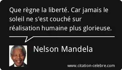Que règne la liberté. Car jamais le soleil ne s'est couché sur réalisation humaine plus glorieuse.