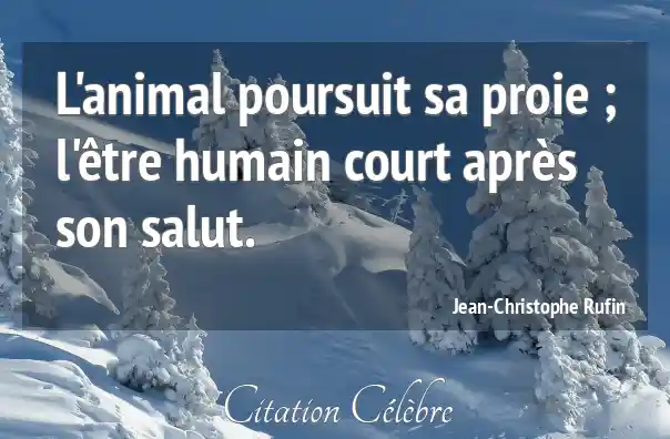 L'animal poursuit sa proie ; l'être humain court après son salut.