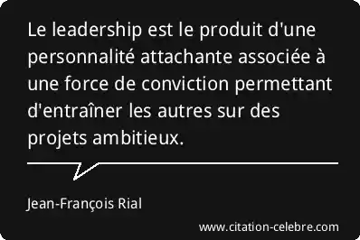 Le leadership est le produit d'une personnalité attachante associée à une force de conviction permettant d'entraîner les autres sur des projets ambitieux.