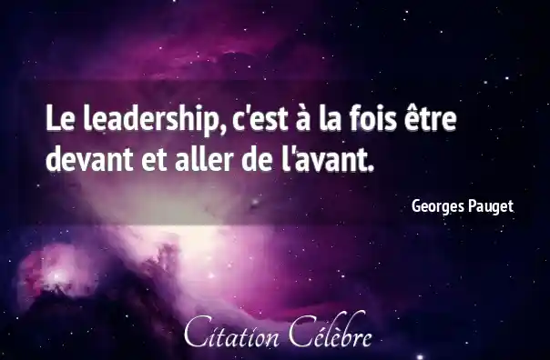 Le leadership, c'est à la fois être devant et aller de l'avant.