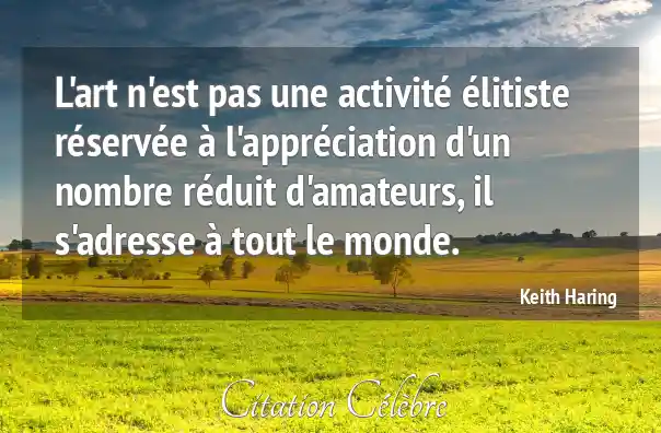 L'art n'est pas une activité élitiste réservée à l'appréciation d'un nombre réduit d'amateurs, il s'adresse à tout le monde.