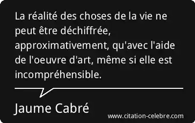 La réalité des choses de la vie ne peut être déchiffrée, approximativement, qu'avec l'aide de l'oeuvre d'art, même si elle est incompréhensible.