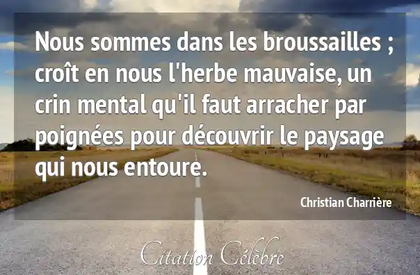 Nous sommes dans les broussailles ; croît en nous l'herbe mauvaise, un crin mental qu'il faut arracher par poignées pour découvrir le paysage qui nous entoure.