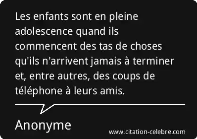 Les enfants sont en pleine adolescence quand ils commencent des tas de choses qu'ils n'arrivent jamais à terminer et, entre autres, des coups de téléphone à leurs amis.