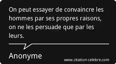 On peut essayer de convaincre les hommes par ses propres raisons, on ne les persuade que par les leurs.