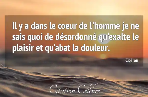 Il y a dans le coeur de l'homme je ne sais quoi de désordonné qu'exalte le plaisir et qu'abat la douleur.