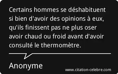 Certains hommes se déshabituent si bien d'avoir des opinions à eux, qu'ils finissent pas ne plus oser avoir chaud ou froid avant d'avoir consulté le thermomètre.
